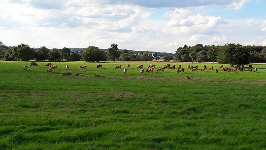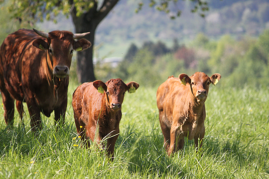 Auf dem Langwieserhof wird glückliche Tierhaltung groß geschrieben. Neben den Pensionspferden haben hier auch Rinder ein Zuhause.